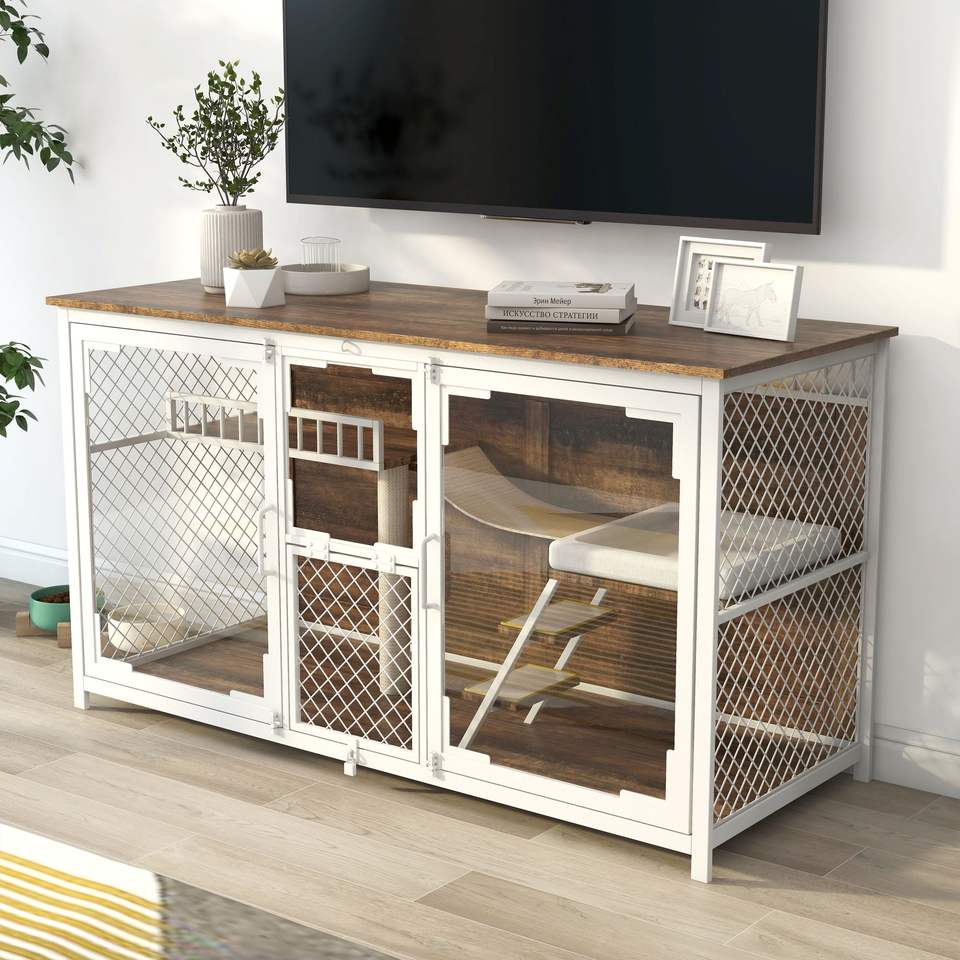 Stylish Multi-Functional Wooden Cat Villa TV Stand Cat House and Entertainment Center