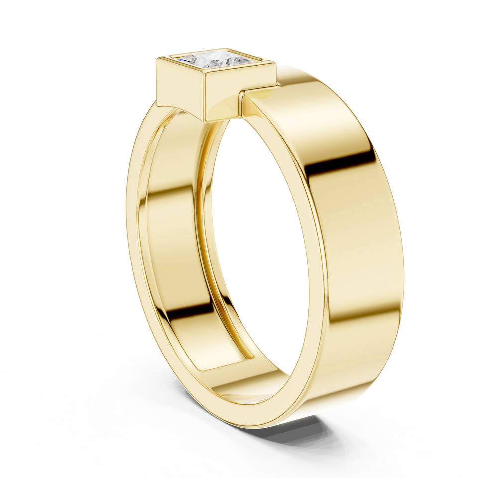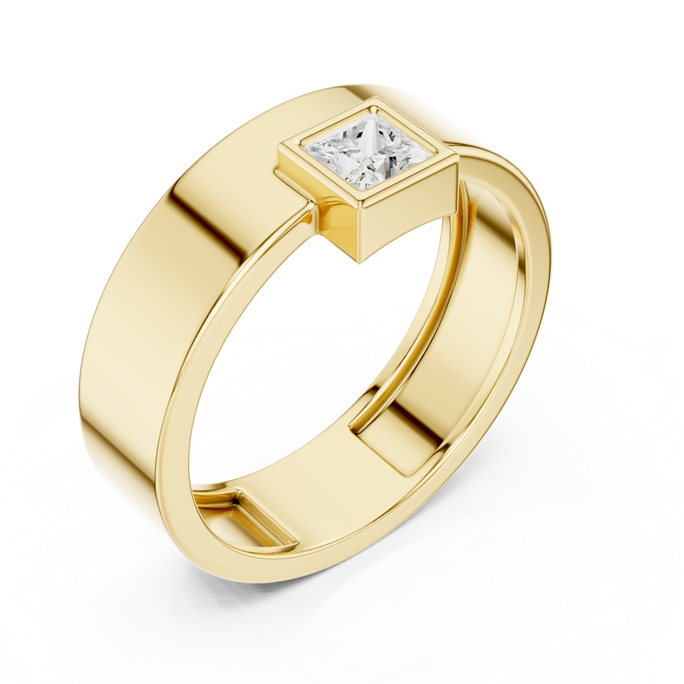 Bague élégante en diamant taille princesse en provenance du Gujarat, Inde, plaquée or jaune 18 carats, unisexe, taille ajustable