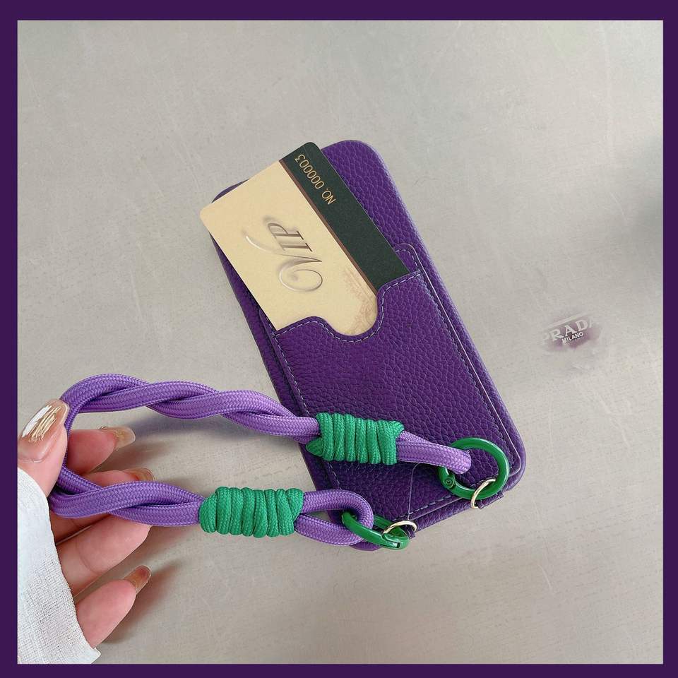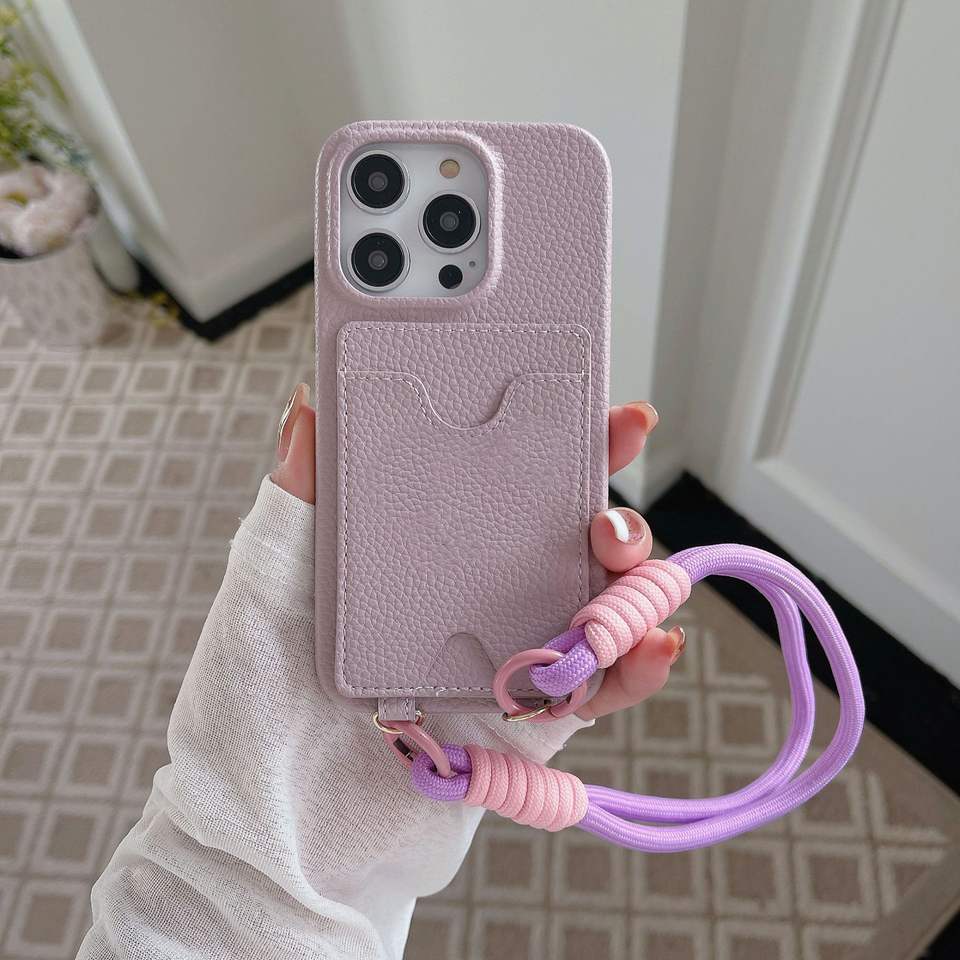 Coque de téléphone élégante en cuir PU avec fente pour carte et lanière, housse de téléphone antichoc pour iPhone 17 16 15 14 13 12 Pro Max Plus