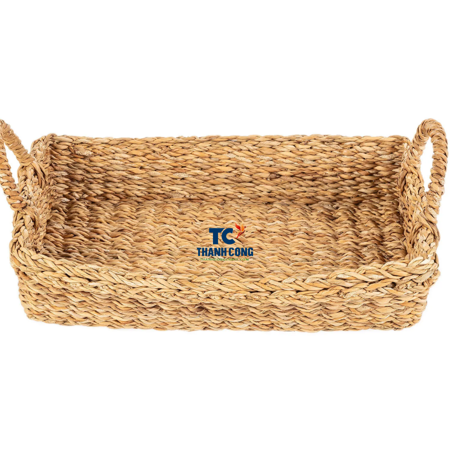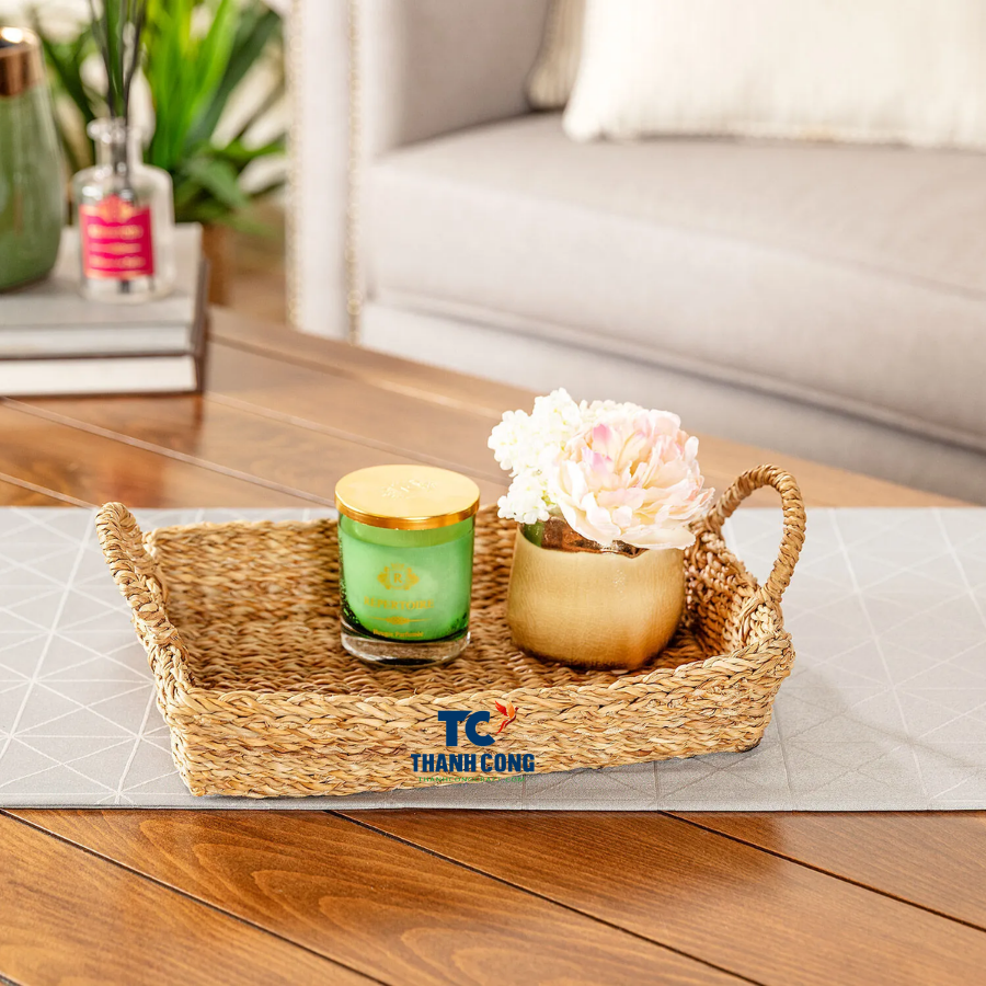 Plateau rond en rotin élégant avec poignées panier naturel fabriqué à la main pour l'affichage de la table basse et la décoration de stockage à la maison du Vietnam