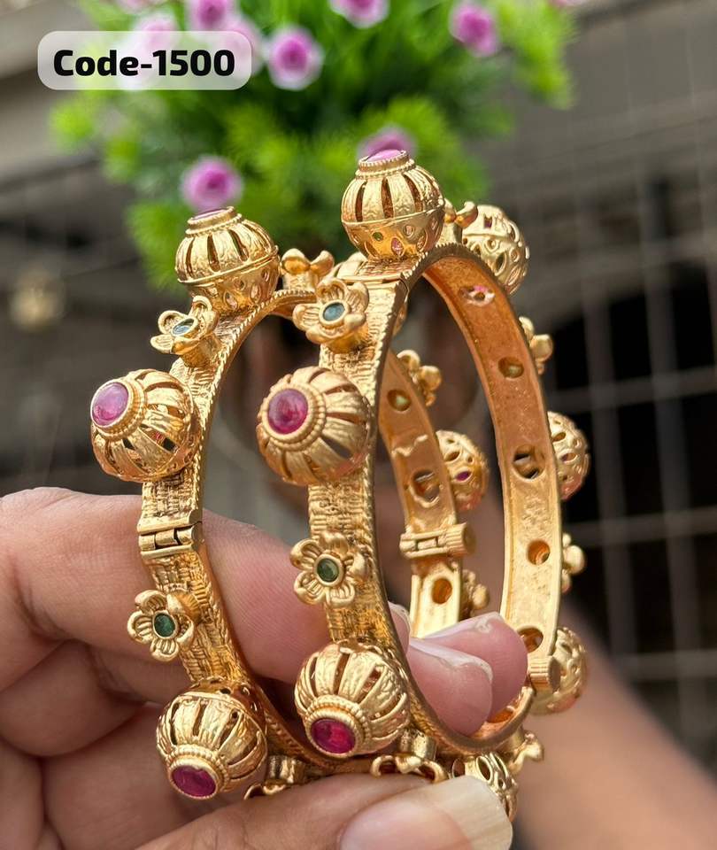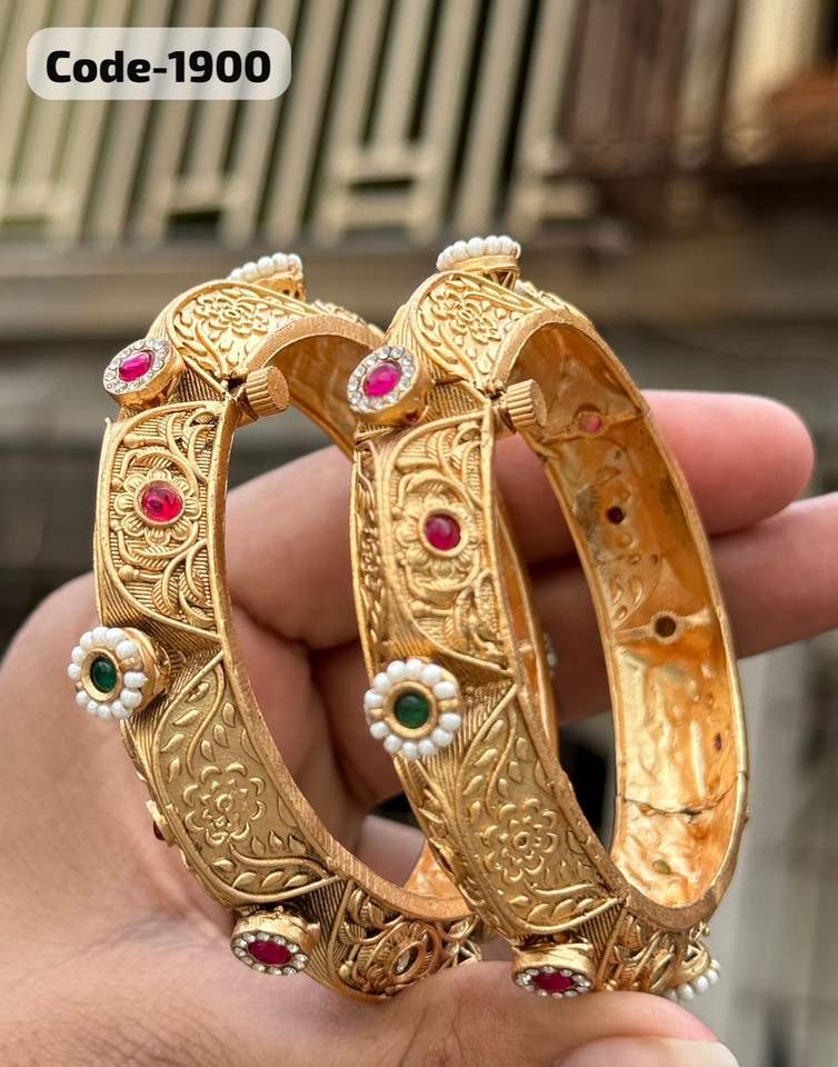 Bracelets élégants en laiton Rajwadi avec sculptures ethniques pierres multicolores et embellissements de perles parfaits pour les festivals vêtements de mariée