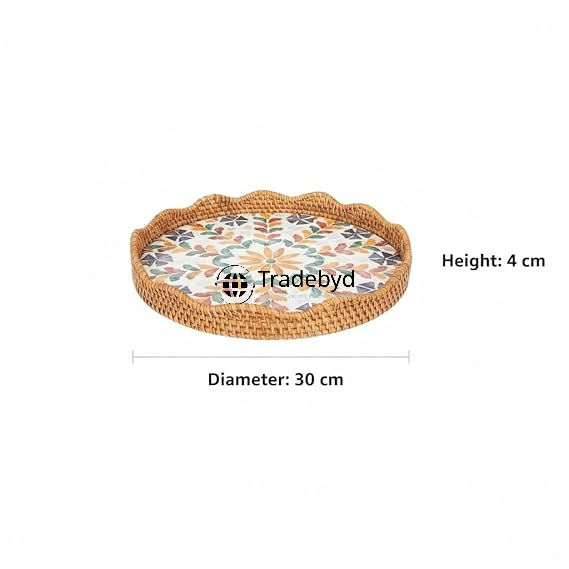 Plateau en rotin élégant, plateau rustique tissé à la main, écologique, cuisine et salle à manger Tradebyd