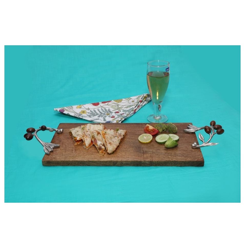 Plateau de service rectangulaire en bois élégant plateau ottoman en bois avec poignée en métal pour les salons, les hôtels et les restaurants