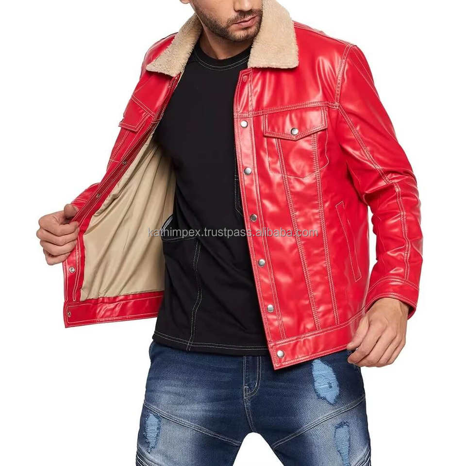 Veste en cuir rouge élégante et vintage pour homme, respirante, avec col chemise et fermeture éclair, idéale pour le streetwear et les sorties hivernales