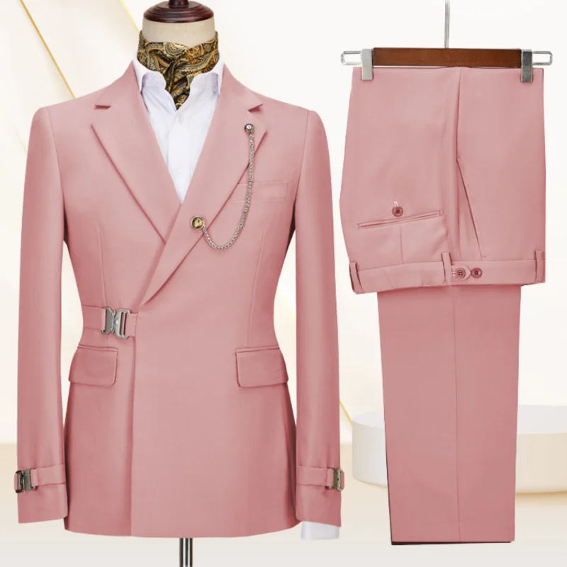 Costumes pour hommes élégants rouge bleu royal bleu marine revers cranté double boutonnage Tuxedos de mariage Blazer costumes de bal 2 pièces (veste + pantalon)