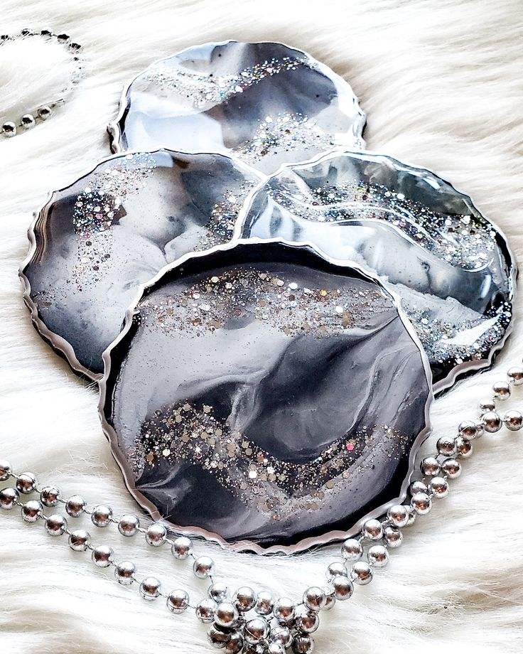 Ensemble de sous-verres élégants en résine résistante à la chaleur avec finition brillante, couleurs et tailles personnalisables pour la décoration intérieure moderne