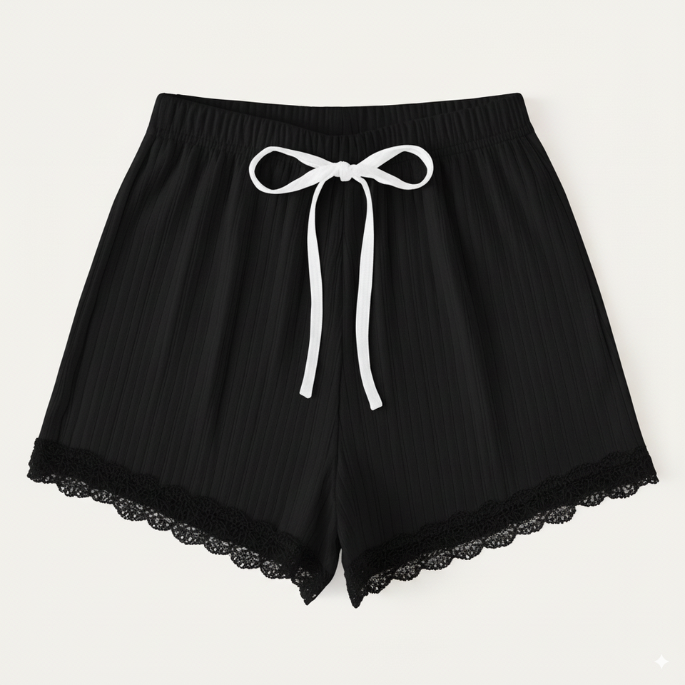 Shorts de nuit confortables et légers pour femmes, en tricot côtelé élégant avec bordure en dentelle, taille élastique, respirant, séchage rapide, vêtements personnalisés
