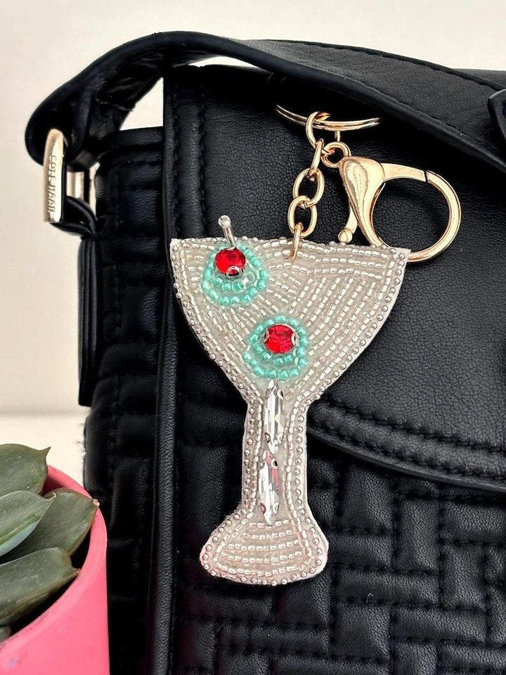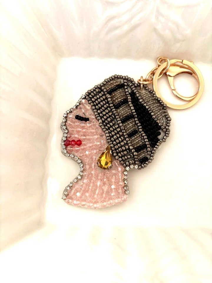Porte-clés élégant brodé de perles de rocaille fait main, breloque en perles de rocaille brodées