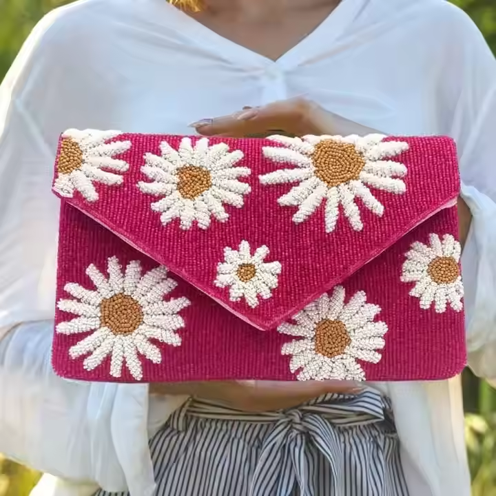 Pochette élégante faite à la main en perles brodées de forme carrée pour femme, idéale pour la Saint-Valentin et les soirées, design personnalisé