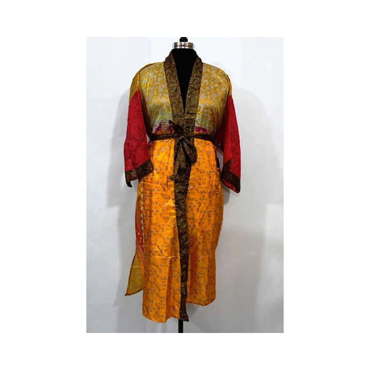 Sari élégant en soie fait à la main, vêtements de nuit en toute Occasion, Kimono décontracté à manches 3/4 avec ceinture à manches cloche, Kaftan marocain