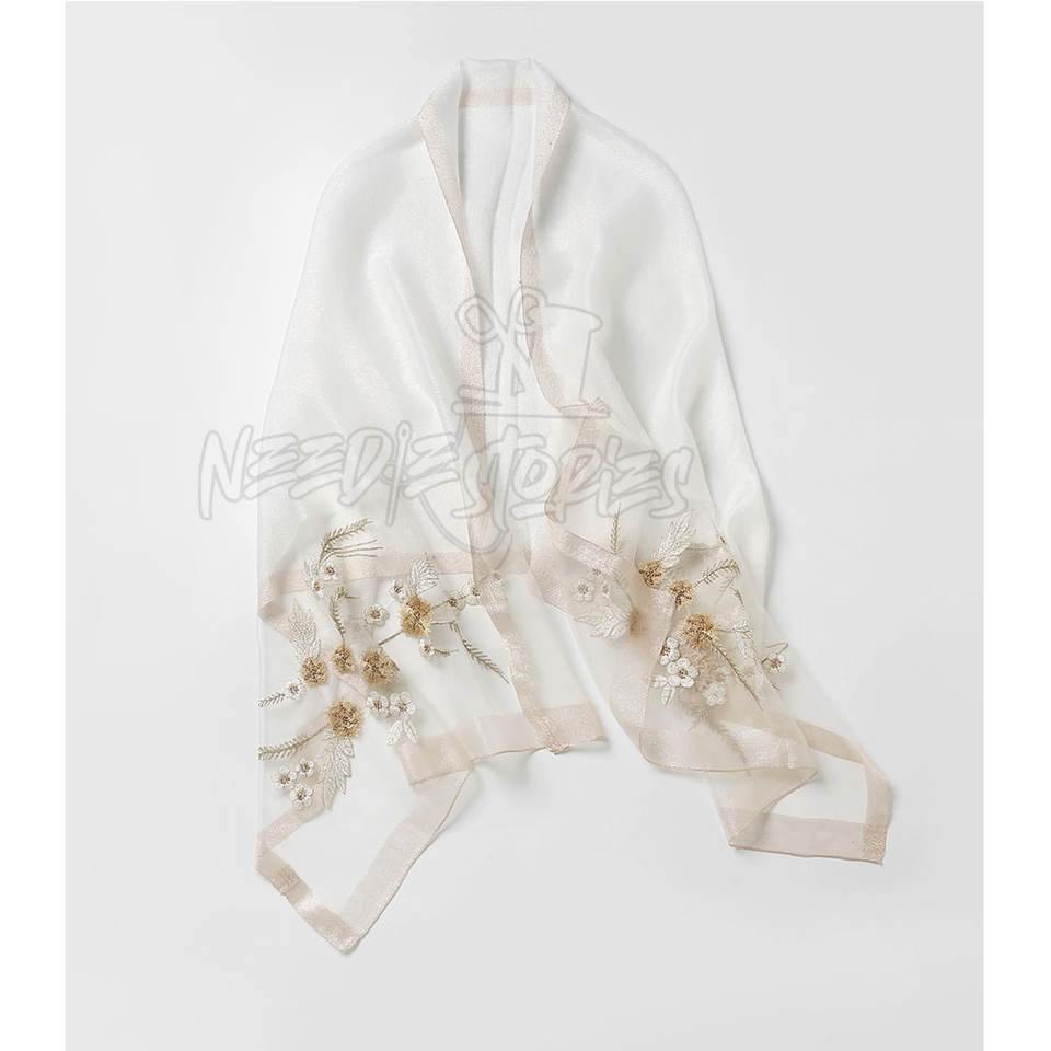 Écharpe élégante en mélange de soie et de laine avec broderie chaude et douce, parfaite pour la mode d'automne et d'hiver