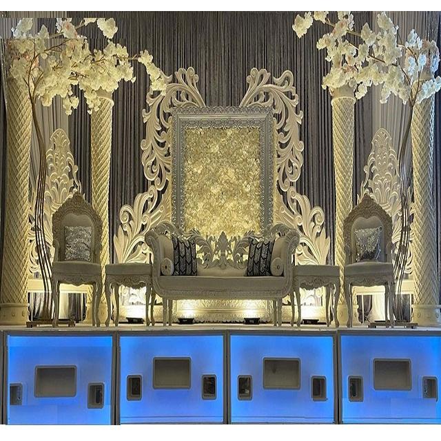 Décorations de mariage en argent luxueuses pour scène de réception de mariage indien à thème argenté élégant