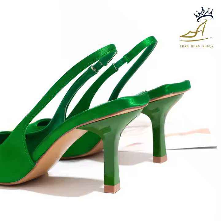 Stylish Slingbacks From Vietnam With Stiletto Heel, PU & Satin, Vibram Toe Box, Easy to Slip on