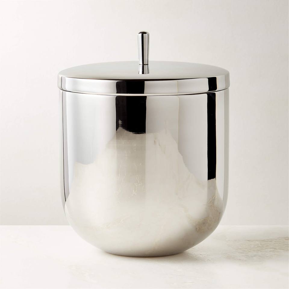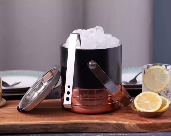 Seau à glace élégant en acier inoxydable avec couvercle et pelle, finition cuivré, design isolé pour bar à domicile moderne et réceptions