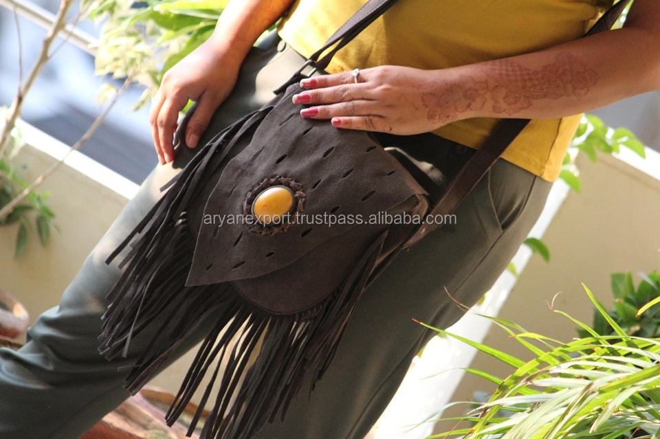 Sac à bandoulière élégant en cuir suédé Sac à main à franges pour femmes