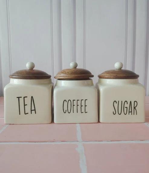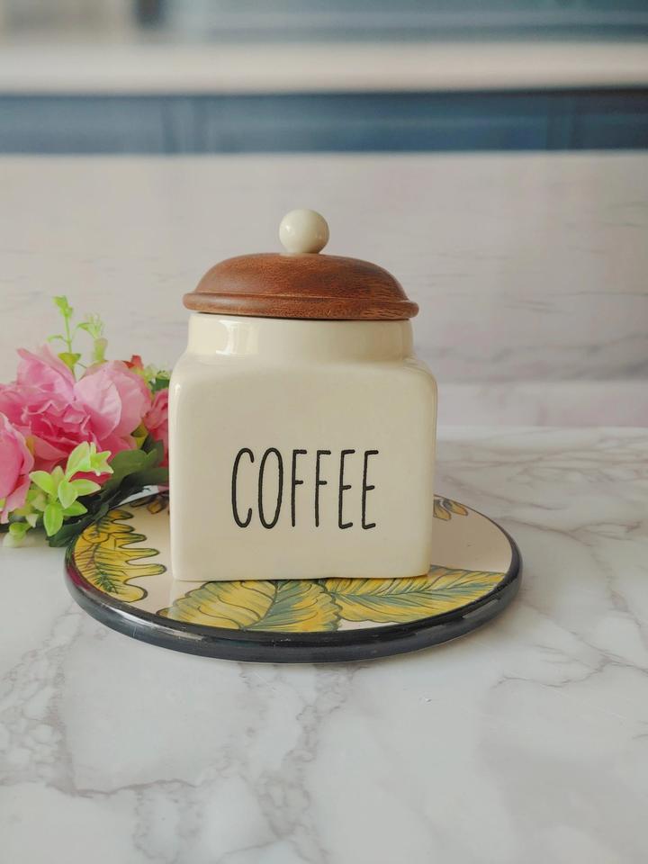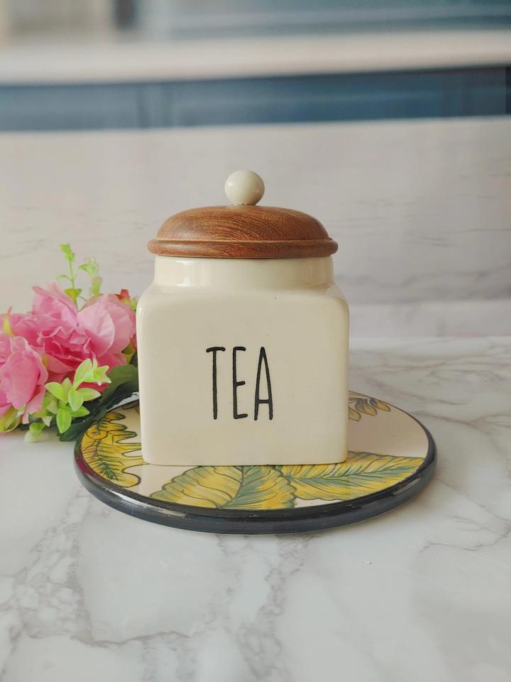 Pot de rangement élégant pour thé avec couvercle en bois, scellé pour la fraîcheur, organisateur décoratif pour comptoir, idéal pour garde-manger, design durable