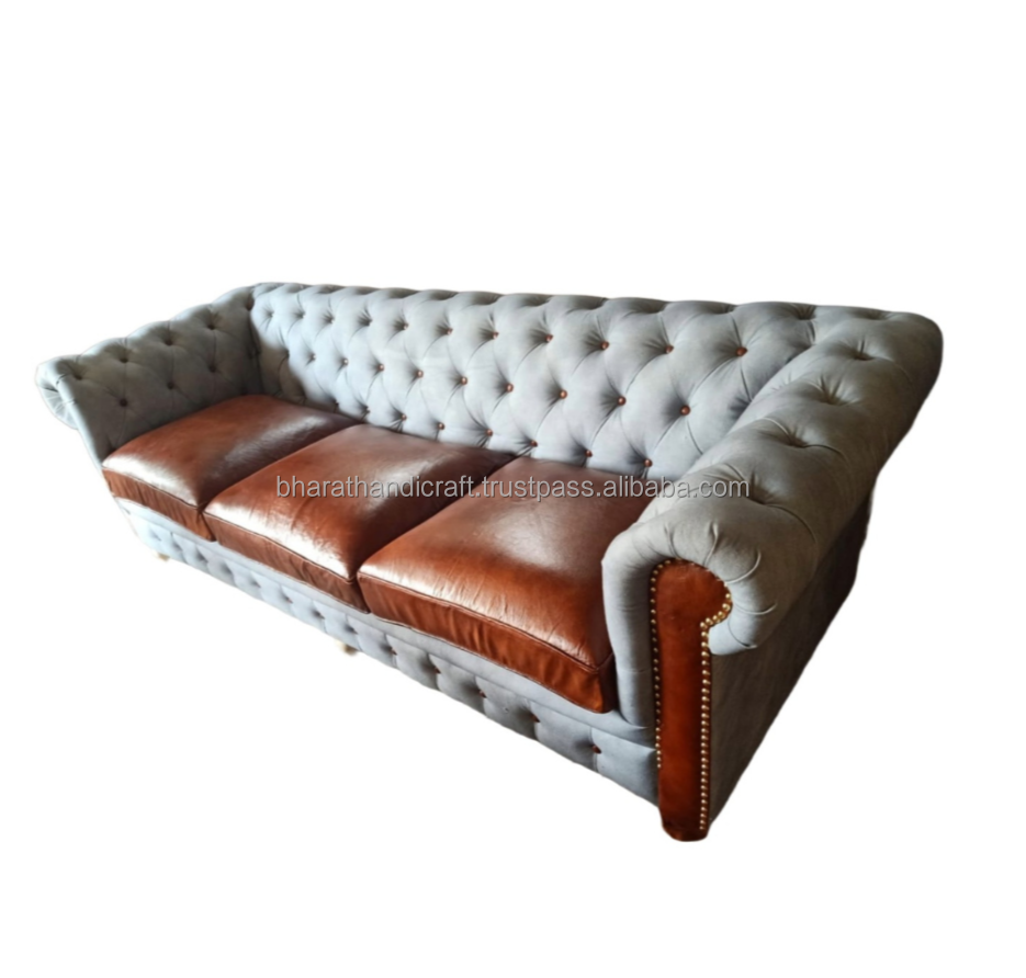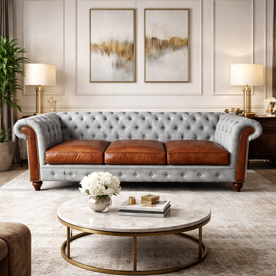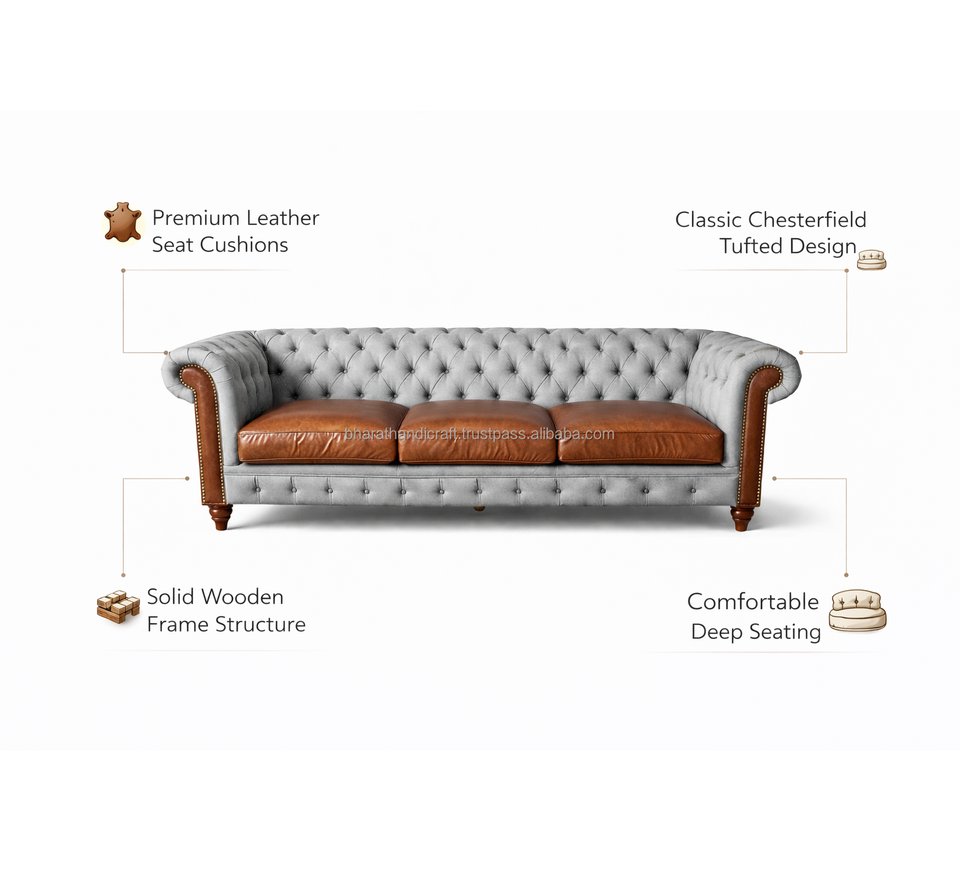 Canapé Chesterfield à trois places élégant et stylé, design intemporel et élégant, parfait pour les salons spacieux et les intérieurs contemporains