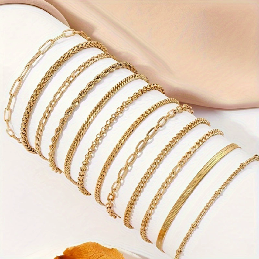 Ensemble de bracelets élégants en acier et titane avec chaîne de bijoux en laiton Accessoires plaqués or 18 carats Style INS minimaliste