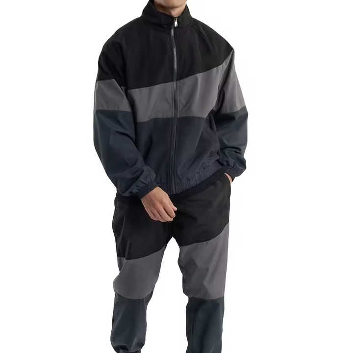 Ensemble de survêtement deux pièces élégant pour homme, coupe-vent, color block, faible MOQ, décontracté, sportif