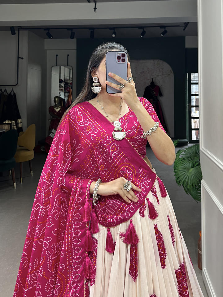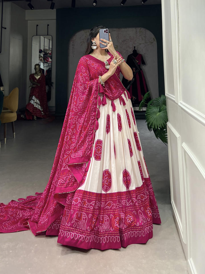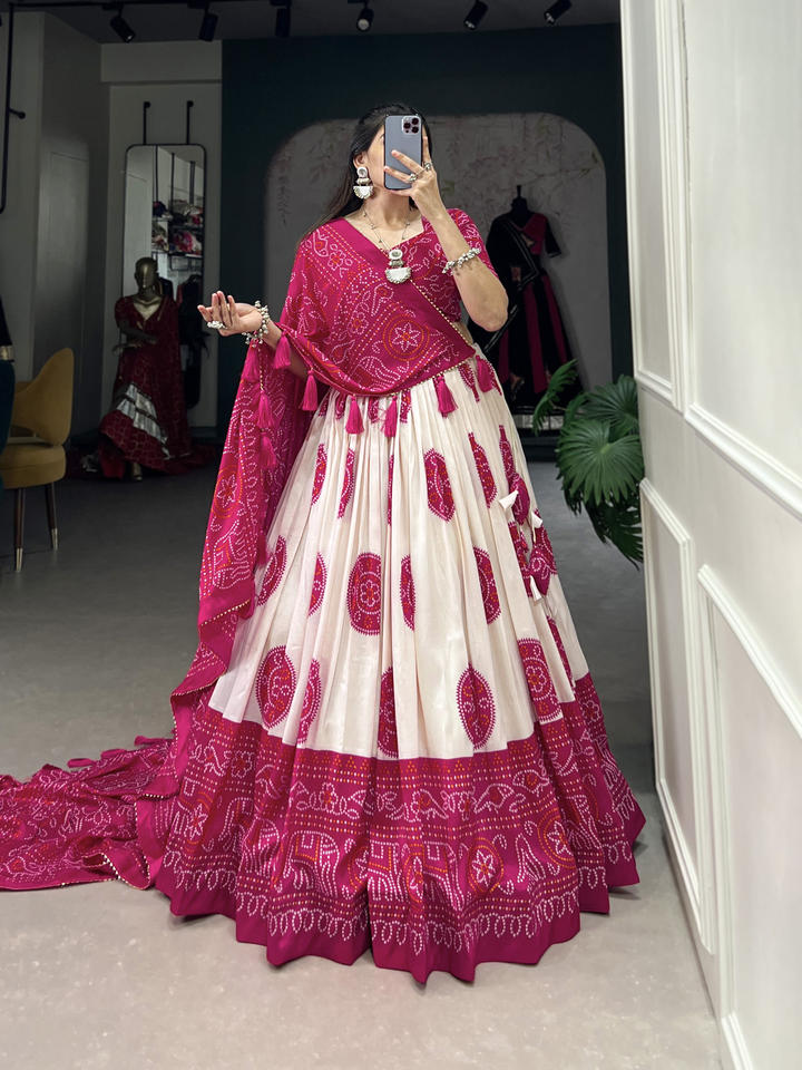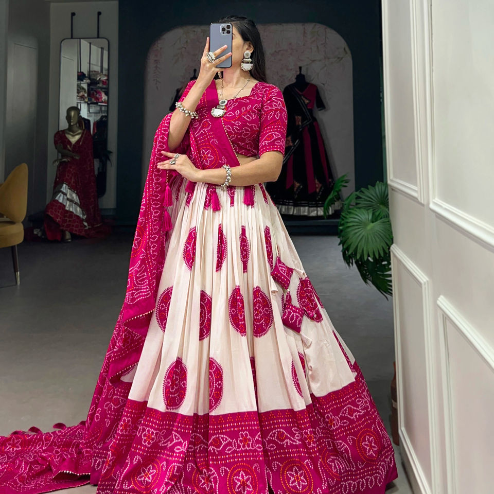Lehenga Work:Bandhej Print