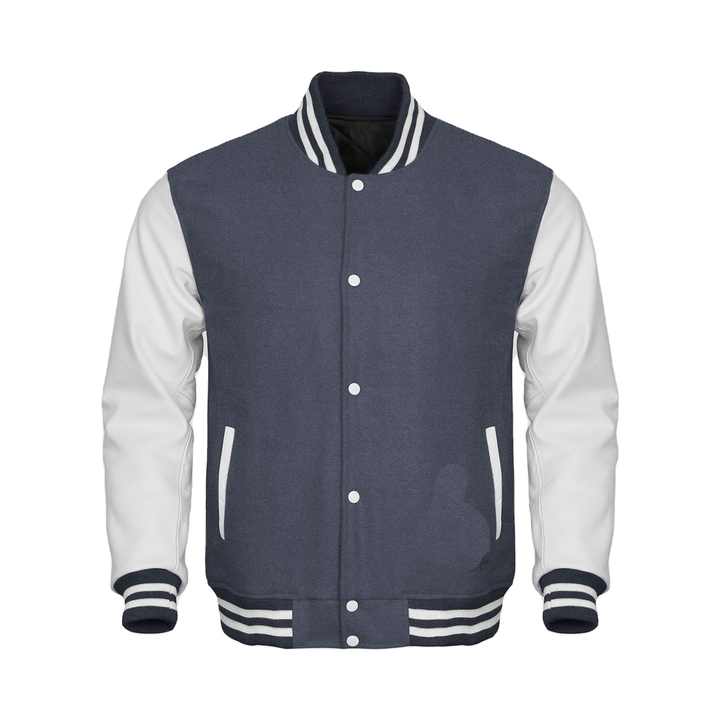 Veste d'université gris-blanc unique et élégante tissu d'hiver corps en laine bras en cuir CollegeBaseballjacket pour hommes expédition DDP
