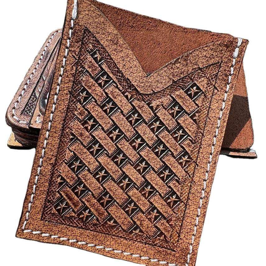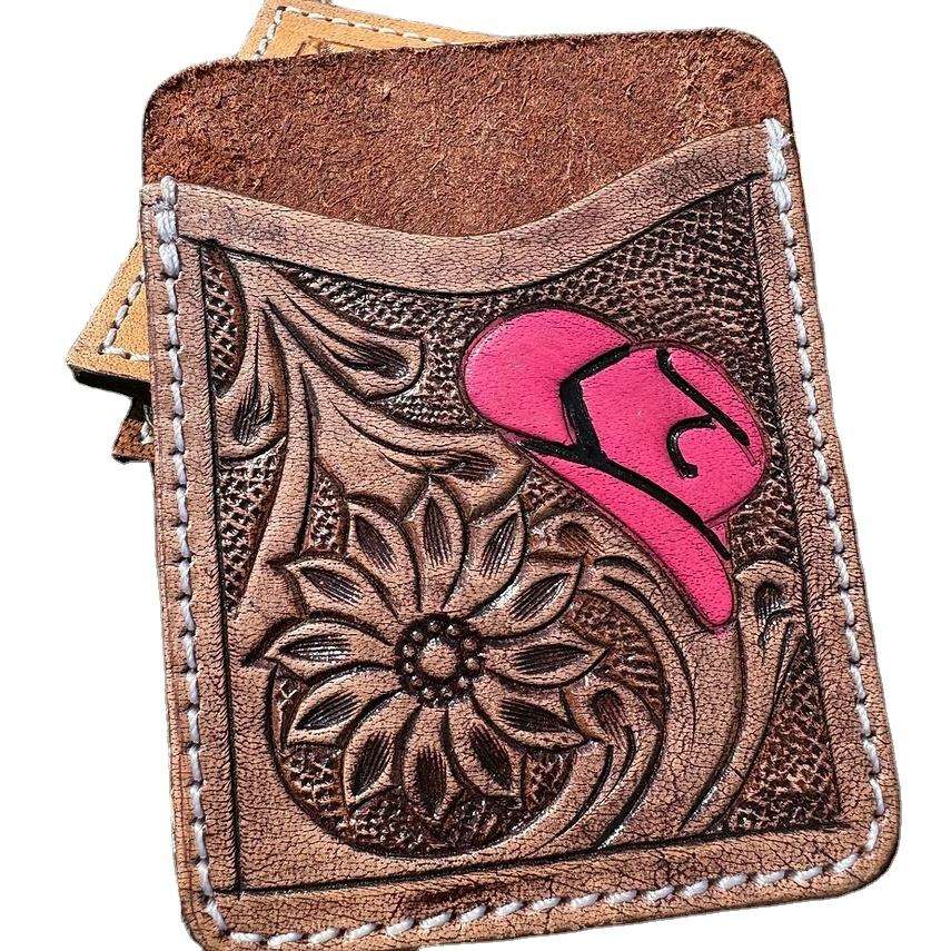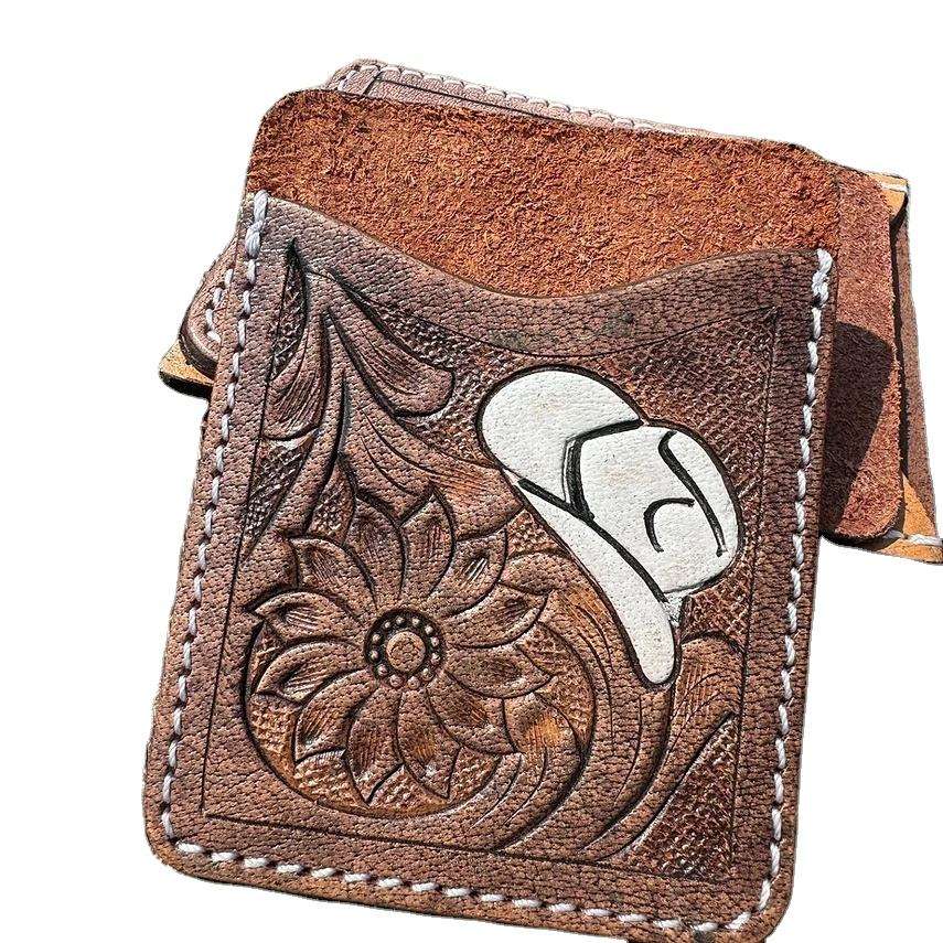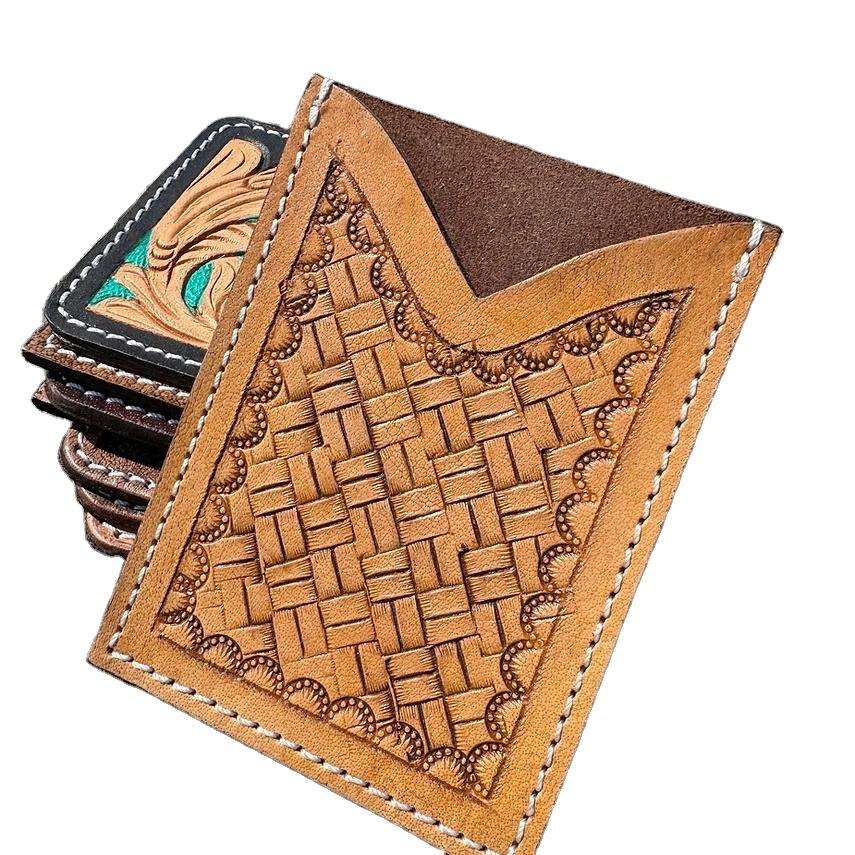 Porte-cartes multifonction en cuir véritable avec blocage RFID, design floral occidental élégant, fait à la main, pour cartes de crédit et cartes bancaires