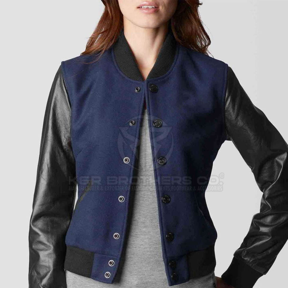 Product name:Women Leather Sleeves Varsity Jacket
