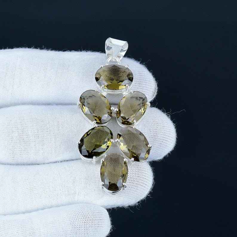 Stylish Women's Smoky Quartz Pendant Fantastic Design Handmade Silver Plated Gemstone Jewelry Bezel Setting Wholesale Accessory