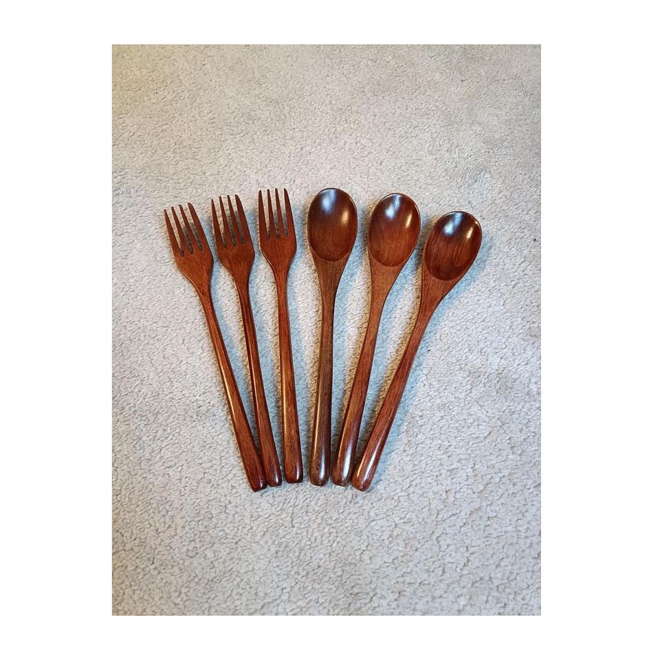 Ensemble de couverts en bois élégant, parfait pour les tables modernes, avec des ustensiles en bois poli et lisses de qualité