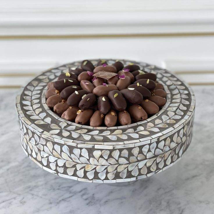 Plateau en bois élégant d'incrustation de vadrouille pour la nourriture de fête servant des arrangements décoratifs de chocolat et des idées de cadeaux mémorables