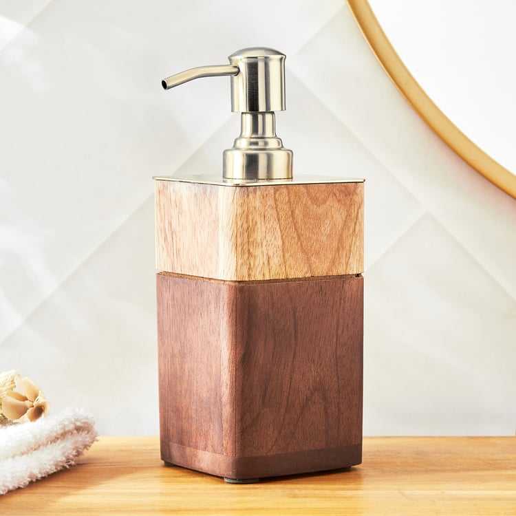 Stylish Wooden Soap Dispenser with Pump for Bathroom Sink Display in Natural Wood Finish for a Chic and Clean Look