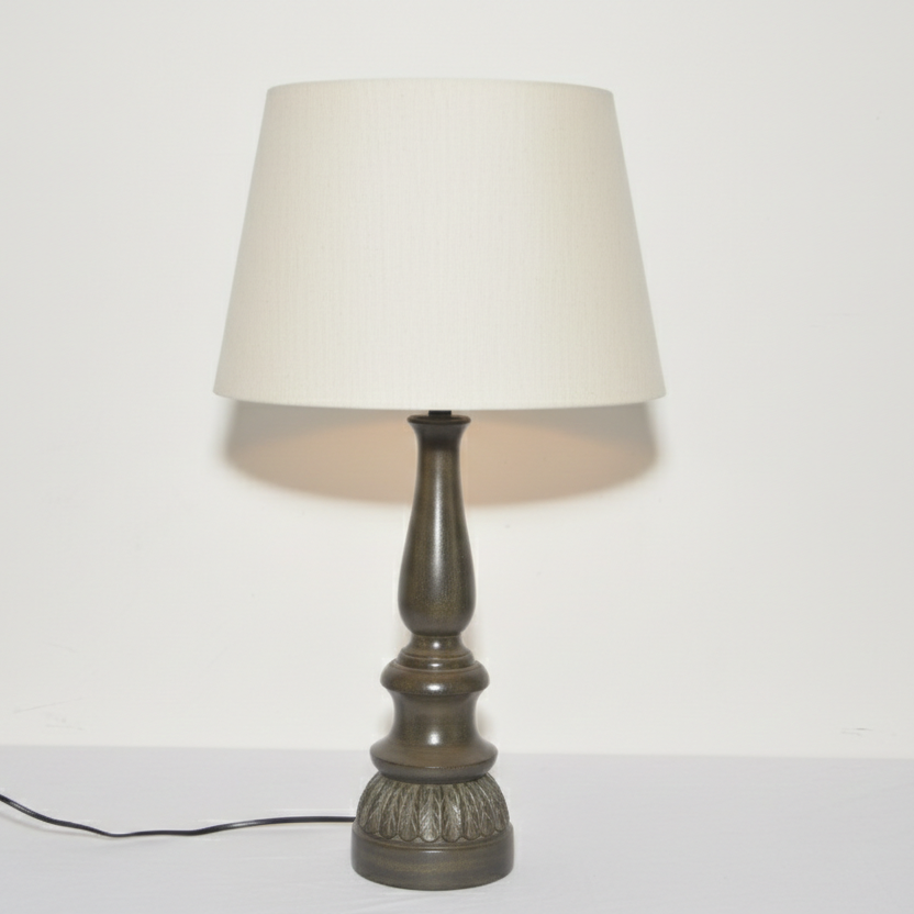 Lampe de table en bois élégante avec base tournée classique, abat-jour en tissu doux et construction durable pour la maison moderne
