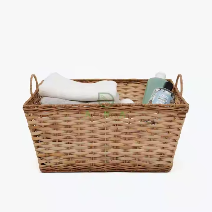 Élégant panier à linge en rotin tissé avec poignées de transport faciles pour salle de bain chambre et placard