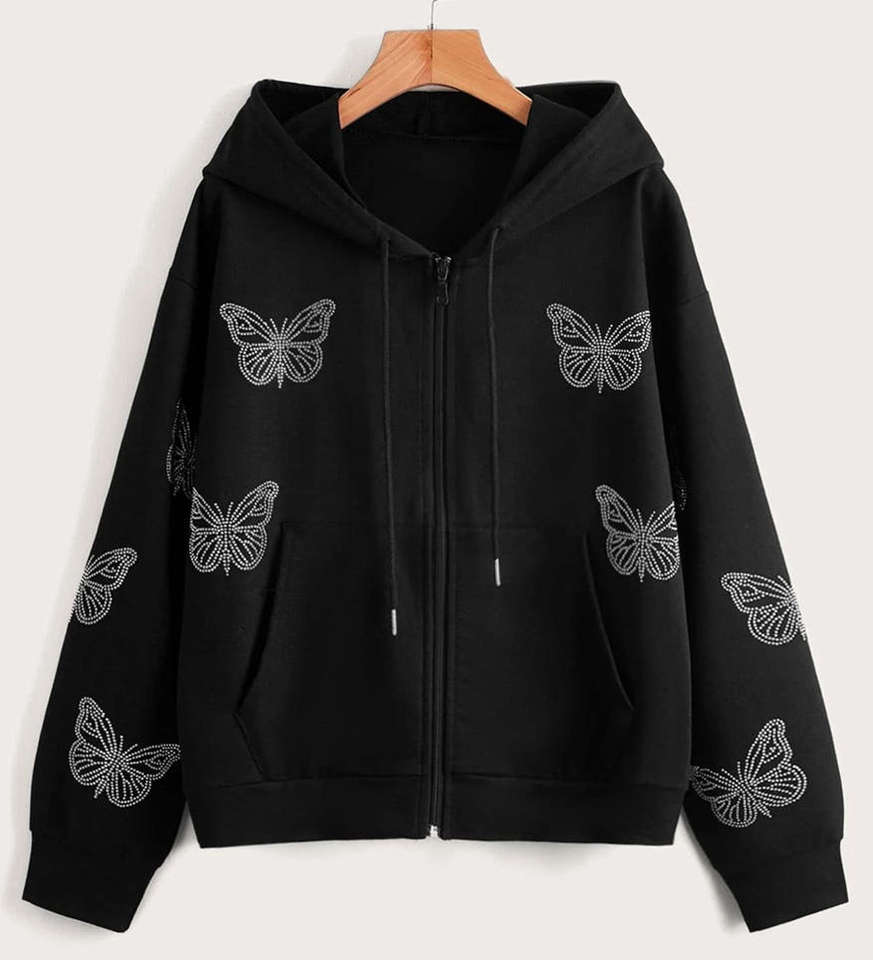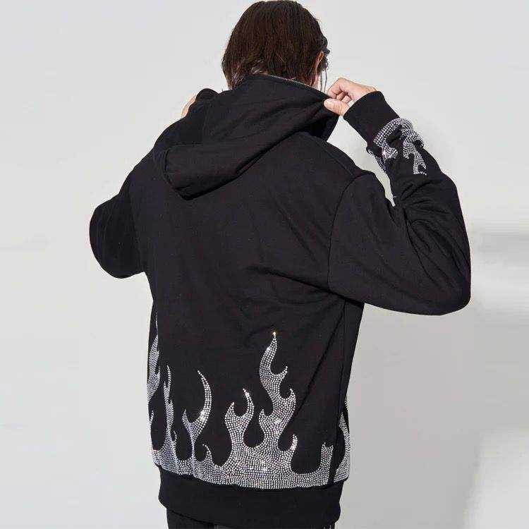 Sweat à capuche élégant zippé avec strass en cristal pailleté Sweat à fermeture éclair pour streetwear urbain