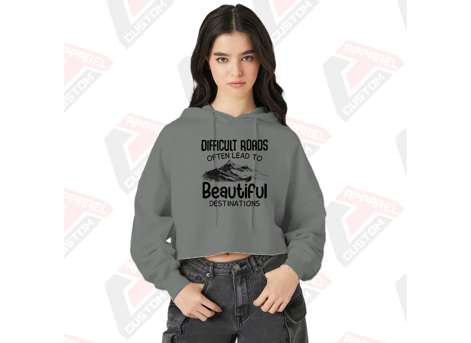 Stylish and Cozy Women's Crop Hoodie 100% Cotton for Winter Layering Embroidered Design Digital Printing Plain Dyed