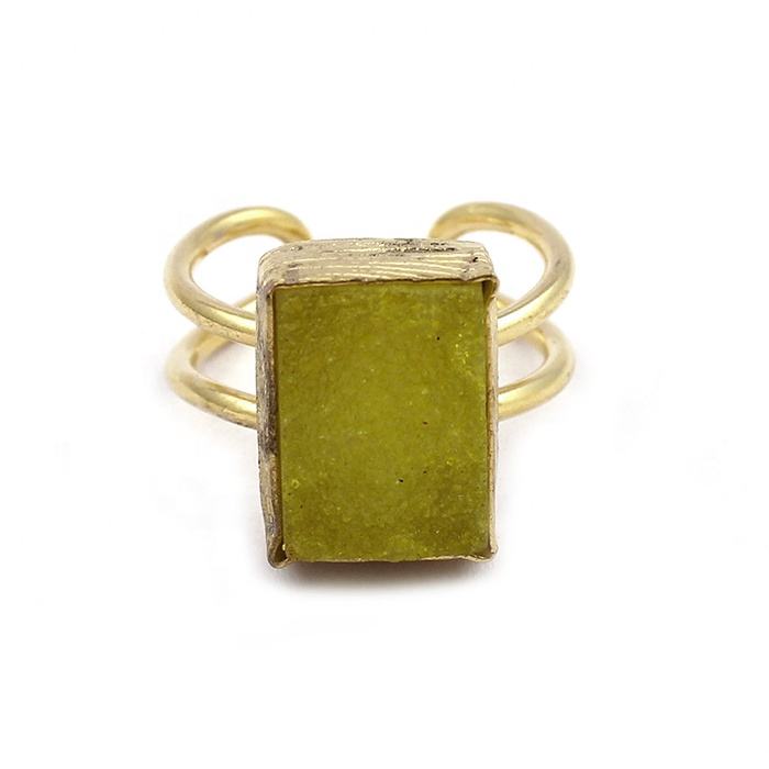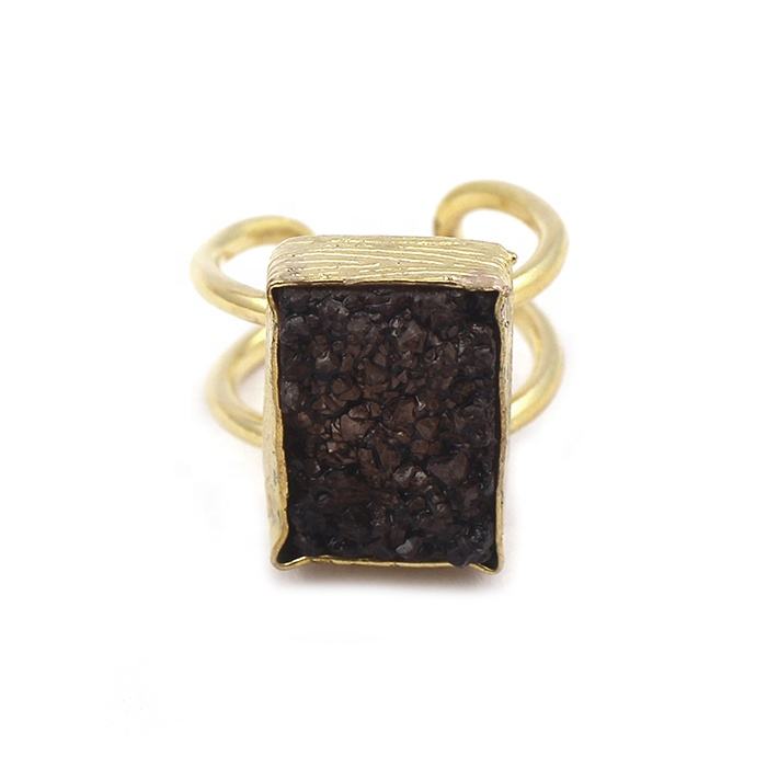 Élégant bleu sucre Druzy pierres précieuses plaqué or réglable forme Rectangle bague faite à la main Agate Druzy pierres précieuses bijoux