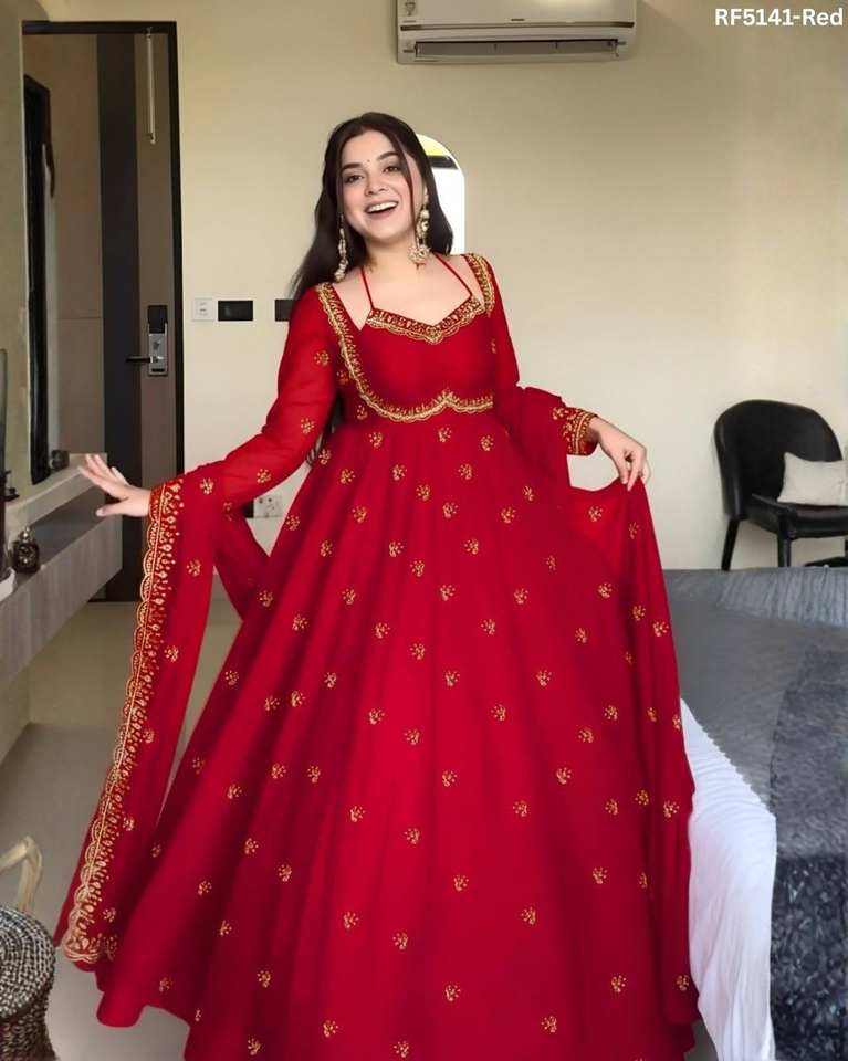 Fabric Type:Gown and Dupatta - Faux Georgette Pant - Micro cotton