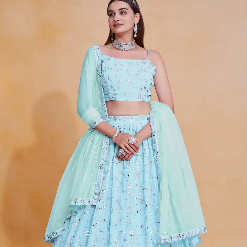 LEHENGA TRAVAIL:Zari, travail de broderie en séquence