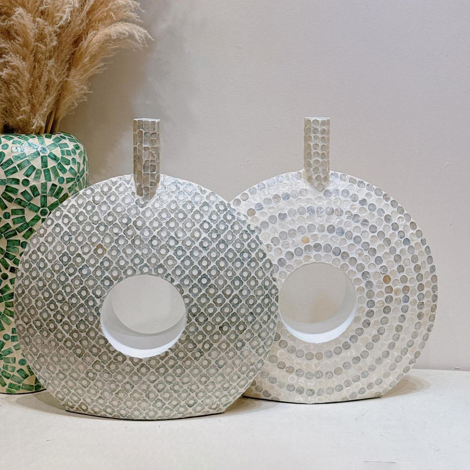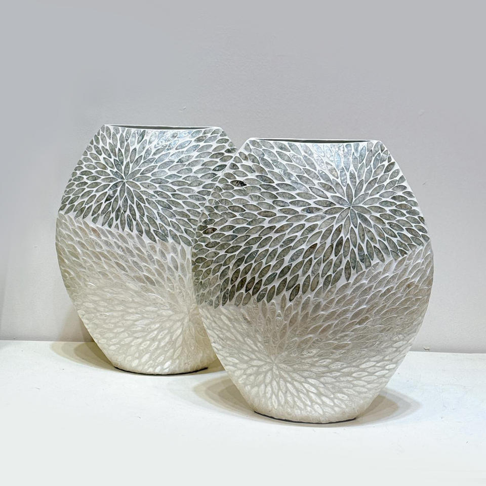 Stylish nacreous pearl flower vase living space decoration high quality MOP shell inlay vases