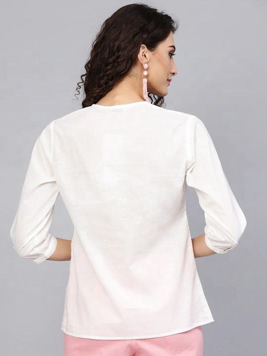 Stylish Trendy Women's Summer White Pure Cotton Tunic Top Full Sleeves Embroidered Floral Flowers Natural Waistline Woven Method
