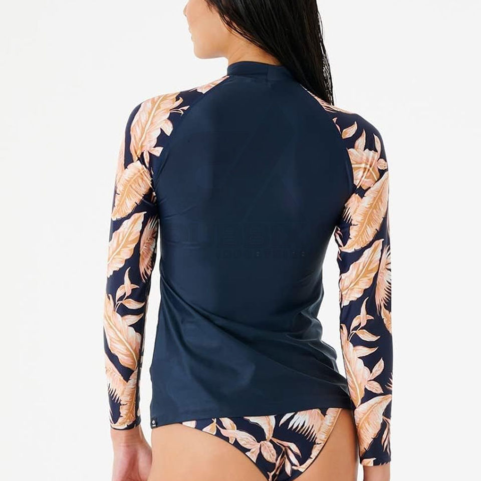 Stylish women's rash guard rash-guard athletic slim fit bathing suits zip front swim tops high elastic snorkeling jacket
