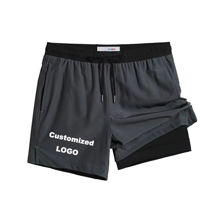 SuCustomized Short de plage à séchage rapide pour homme 2 en 1 Short de sport pour entraînement et gymnastique Maillot de bain avec doublure de compression