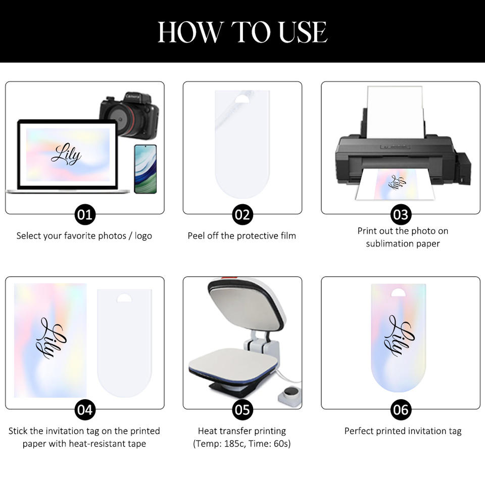 Étiquettes d'invitation vierges en acrylique pour sublimation, personnalisables, imprimables, pour mariages, événements, étiquettes nominatives, étiquettes cadeaux pour impression par transfert thermique