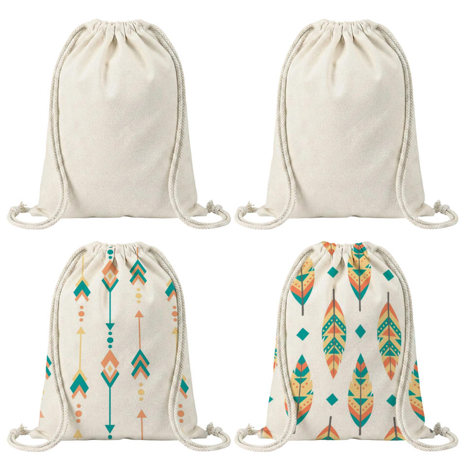 Sac à cordon en coton et lin vierge pour sublimation 30x40cm, imprimable double face, sac personnalisé pour la gym, les voyages et le shopping
