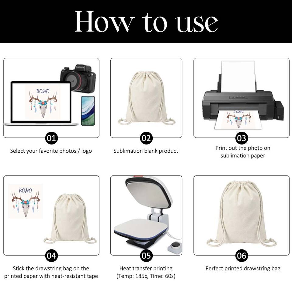 Nom de l'article:Sac à cordon en coton et lin sublimable