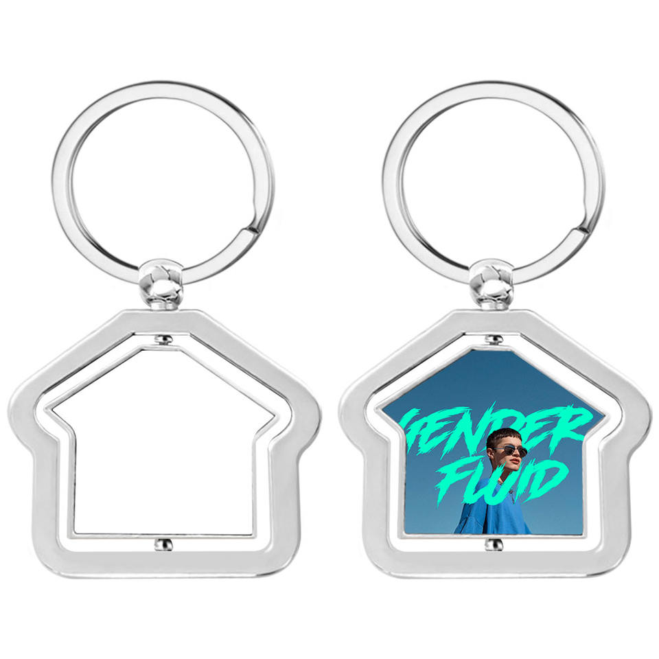 Porte-clés rotatif vierge en alliage de zinc pour sublimation, en forme de maison, double face, pour photos, idéal pour la personnalisation DIY et les fournitures cadeaux