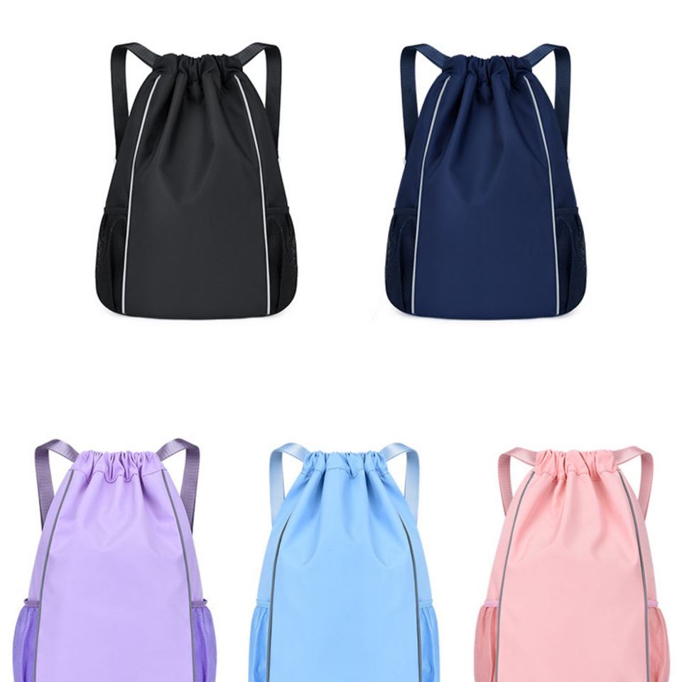 Sac de sport pliable et portable en polyester 210D imperméable, personnalisable par sublimation, avec poignée en corde, fermeture éclair et fermoir, idéal pour la natation et les promotions.