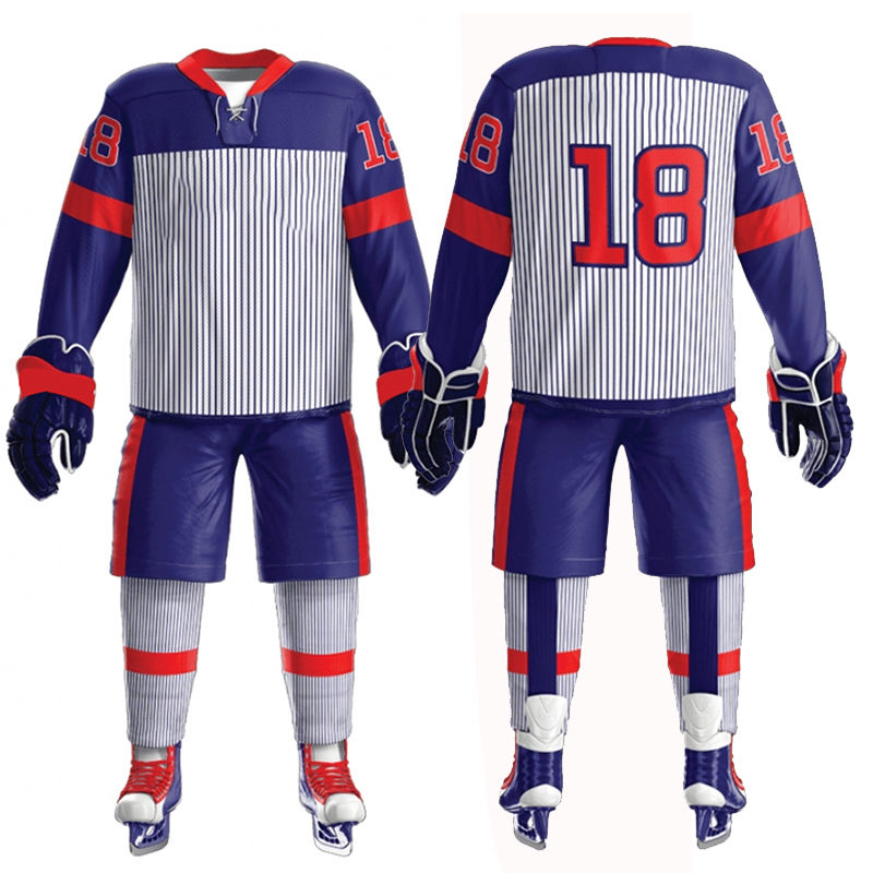 Uniforme de hockey sur glace unisexe personnalisé OEM, broderie par sublimation, entraînement sportif, respirant, séchage rapide, uniforme de hockey sur glace
