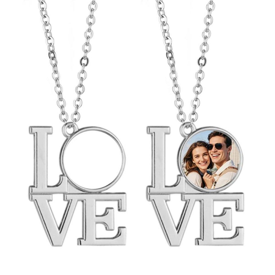 Colliers en métal à sublimation, colliers en alliage de zinc personnalisés avec un design LOVE pour impression recto-verso, colliers DIY, bijoux