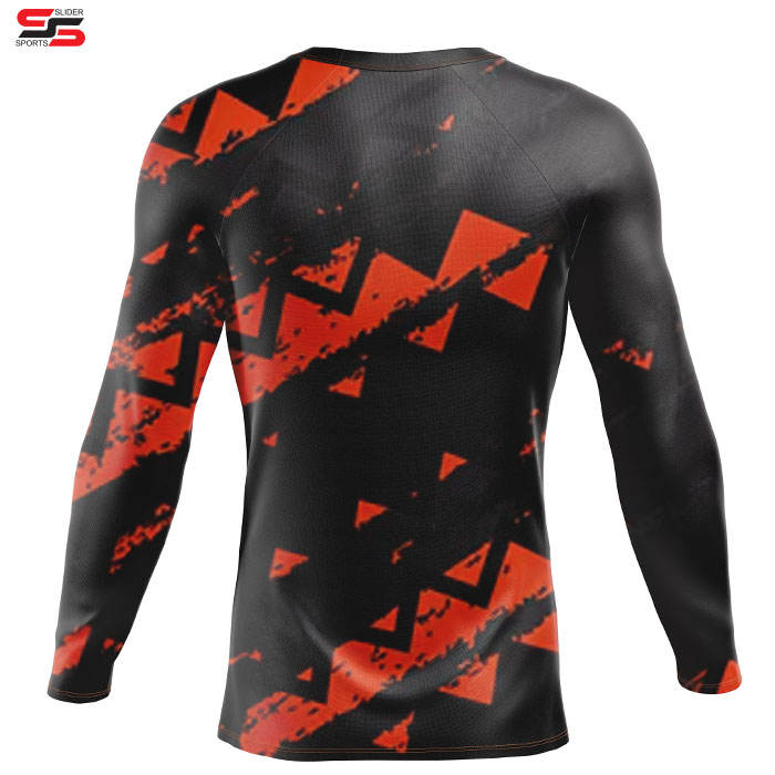 Spandex imprimé par sublimation Haut de chemise de compression à séchage rapide pour hommes Couche de base sportive à manches longues Running Rash Guard